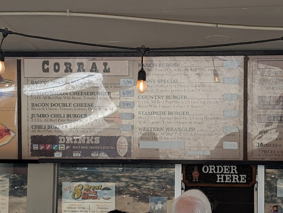 The menu centers on familiar comfort food, especially burgers, with the Stampede Burger standing out as a touchstone item. There's enough variety here to satisfy different tastes—from corndogs and chicken strips to lighter options like tuna and chicken salad. For sides, the chili cheese fries and classic accompaniments complement the straightforward fare. Root beer and root beer floats add to the retro drive-in experience, particularly appealing on warm days.