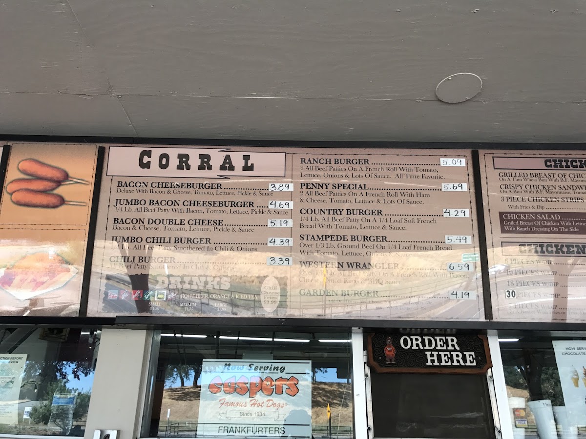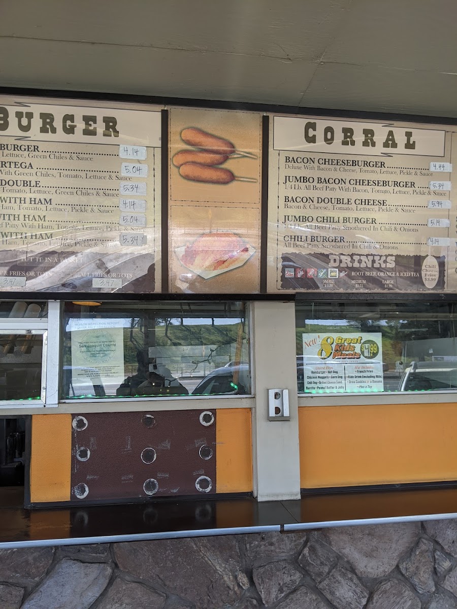 This menu suits quick ordering or casual dining occasions, with food items that are typical for lunch, dinner, or a casual snack. The range of burgers and sides makes it suitable for those seeking a traditional American fast food meal in a drive-in setting.