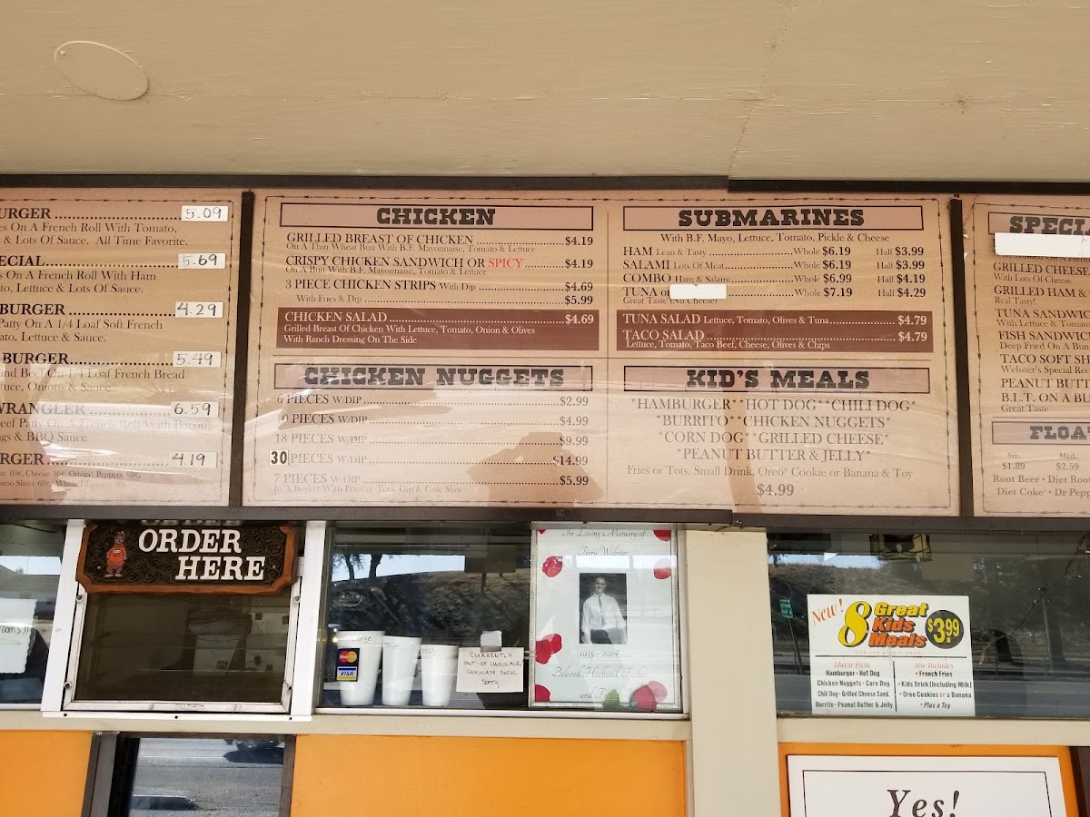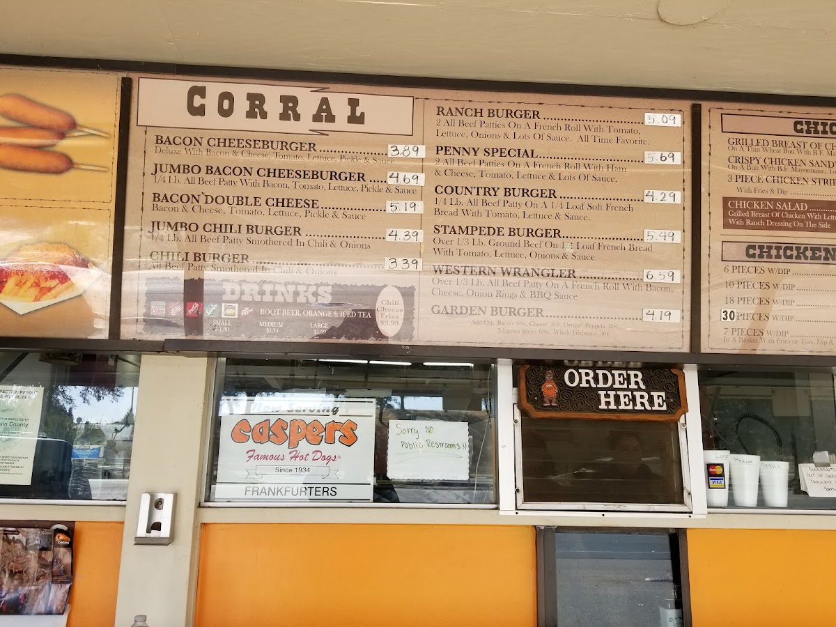 Additional items include corn dogs, tuna salad, and soft tacos which offer variety beyond the typical burger and chicken selections. Beverage options mentioned in customer feedback include ice cream, freezies (a soda and ice cream mix), and milkshakes.